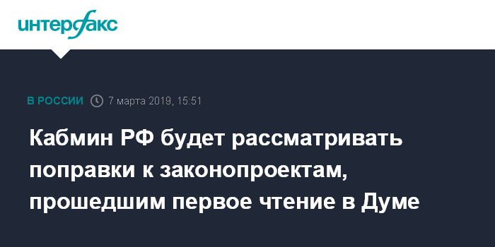 Кабмин РФ будет рассматривать поправки к законопроектам, прошедшим первое чтение в Думе