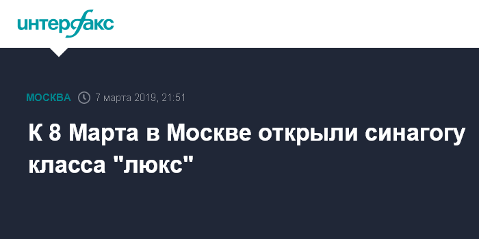К 8 Марта в Москве открыли синагогу класса "люкс"