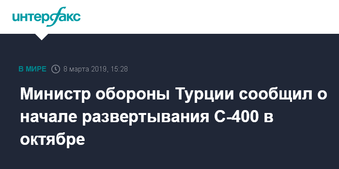 Москва. 8 марта. INTERFAX.RU - Турция приобретает у России зенитные ракетные комплексы С-400 из-за настоятельной необходимости обеспечить безопасность страны, заявил министр обороны Турции Хулуси Акар.