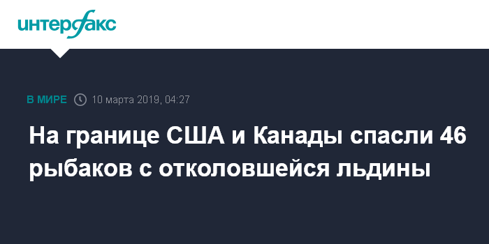 Москва. 10 марта. INTERFAX.RU - Сотрудники Береговой охраны США в субботу спасли 46 рыбаков с отколовшейся льдины на озере Эри на границе США и Канады, сообщил телеканал CBC.