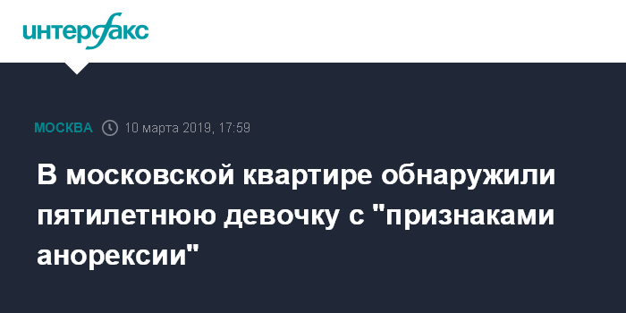 В московской квартире обнаружили пятилетнюю девочку с "признаками анорексии"