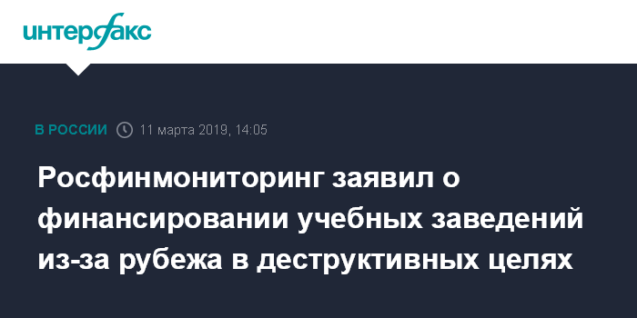 Росфинмониторинг заявил о финансировании учебных заведений из-за рубежа в деструктивных целях