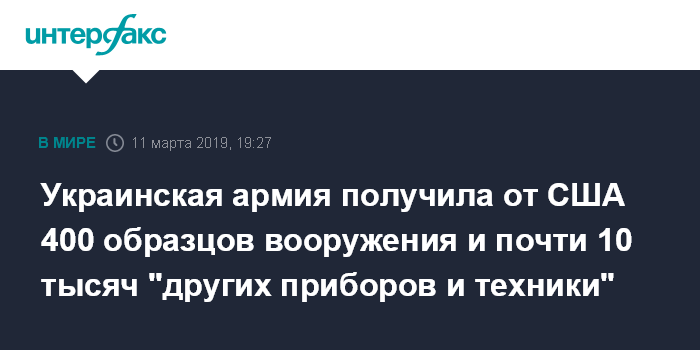 Украинская армия получила от США 400 образцов вооружения и почти 10 тысяч "других приборов и техники"