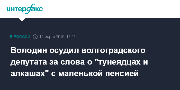Володин осудил волгоградского депутата за слова о "тунеядцах и алкашах" с маленькой пенсией