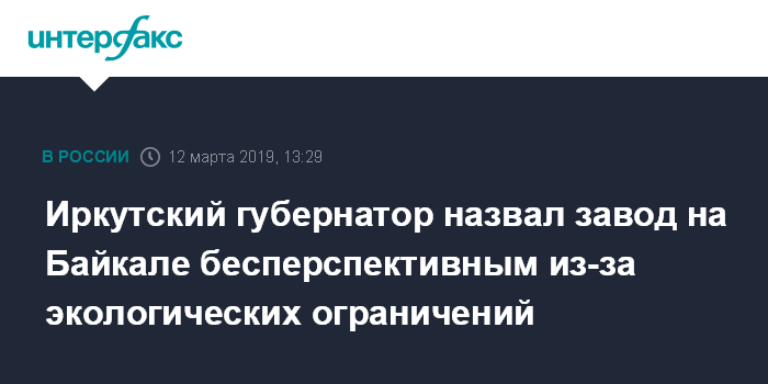 Москва. 12 марта. INTERFAX.RU - Экологические ограничения делают бесперспективной работу строящегося на берегу Байкала завода по розливу воды, заявил губернатор Иркутской области Сергей Левченко.