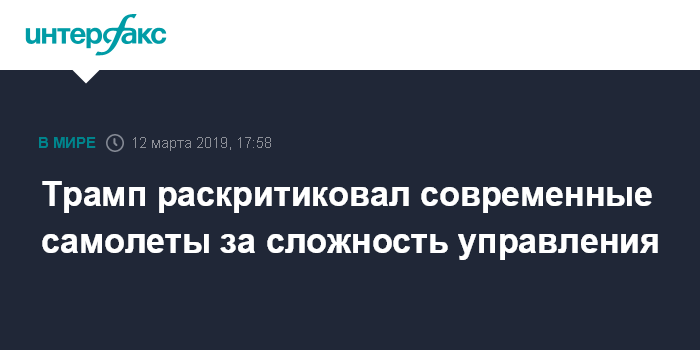 Москва. 12 марта. INTERFAX.RU - Президент США Дональд Трамп подверг критике современные самолеты из-за сложности управлениями ими.