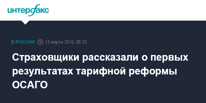 По словам директора РСА Евгения Уфимцева, средняя премия по итогам января-февраля составила 5803 рубля по всем категориям автовладельцев. Из информационной базы РСА следует, что больше всего от реформы выиграли владельцы мотоциклов и мотороллеров, полис для них подешевел на 57,65% по сравнению с прошлым годом, падение в 16,17% зафиксировано по легковым автомобилям юрлиц, для физлиц полис подешевел лишь на 3,59%; в то же время владельцы автобусов регулярных перевозок теперь платят на 9,41% больше, владельцы такси - на 16,22%, троллейбусов - на 15,24%.