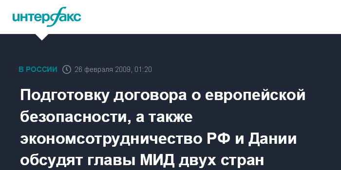 Подготовку договора о европейской безопасности, а также экономсотрудничество РФ и Дании обсудят главы МИД двух стран