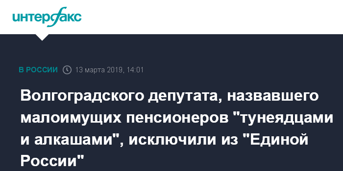 Волгоградского депутата, назвавшего малоимущих пенсионеров "тунеядцами и алкашами", исключили из "Единой России"