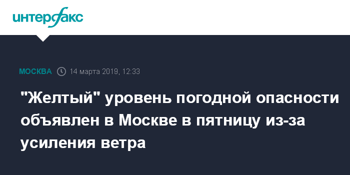Москва. 14 марта. INTERFAX.RU - Гидрометцентр России повысил уровень погодной опасности в столичном регионе 15 марта до "желтого" уровня из-за усиления ветра.