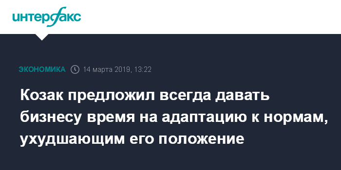 Козак предложил всегда давать бизнесу время на адаптацию к нормам, ухудшающим его положение
