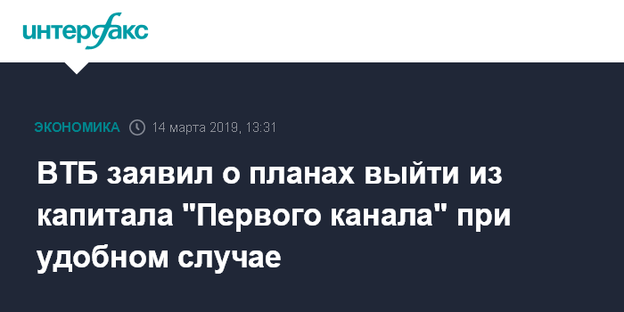 ВТБ заявил о планах выйти из капитала "Первого канала" при удобном случае