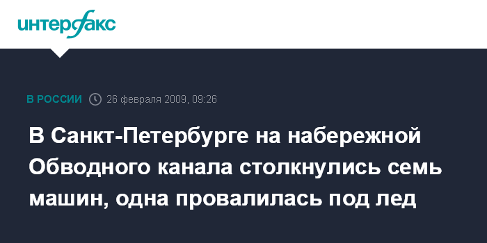 По словам собеседника агентства, около 08:30 мск у дома номер 127 по набережной Обводного канала столкнулись семь автомобилей. "По предварительной информации, один из автомобилей вылетел с дороги и провалился под лед. На место выехали водолазы и спасатели", - сказал собеседник агентства.