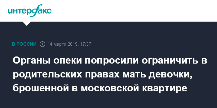 Органы опеки попросили ограничить в родительских правах мать девочки, брошенной в московской квартире