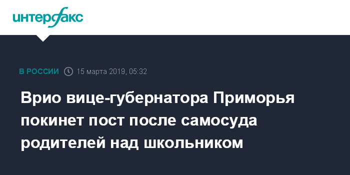 Врио вице-губернатора Приморья покинет пост после самосуда родителей над школьником