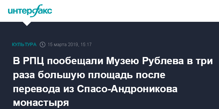 Ранее стало известно, что предстоятель Русской церкви обратился к главе Росимущества с просьбой передать ей Спасо-Андроников монастырь, на территории которого ныне располагается Музей Андрея Рублева. В Минкультуры в связи с этим указали на "определенное напряжение" в музейном сообществе относительно в связи с формулировками действующего закона "О передаче религиозным организациям имущества религиозного назначения".
