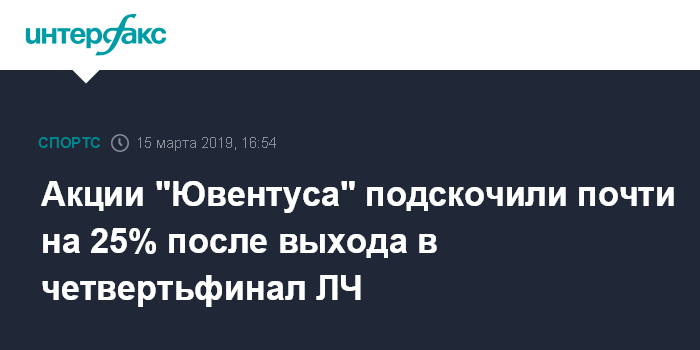 Москва. 15 марта. INTERFAX.RU - Капитализация итальянского футбольного клуба "Ювентус" выросла на четверть с начала недели благодаря выходу в 1/4 финала Лиги чемпионов.