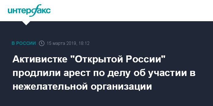 Активистке "Открытой России" продлили арест по делу об участии в нежелательной организации