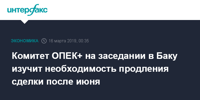 Технический мониторинговый комитет ОПЕК+ соберется в Баку 17 марта, на следующий день приглашенные министры обсудят текущее состояние рынка и ход сделки. "На следующей неделе в Баку будет встреча, и большинство вопросов будет задано, на них в ходе этой встречи будут даны ответы", - пообещал министр нефти ОАЭ Сухейль аль-Мазруи.