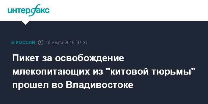 Москва. 16 марта. INTERFAX.RU - Зоозащитники во Владивостоке проводят пикет за освобождение косаток, белух, моржей и тюленей из "китовой тюрьмы" в бухте Средняя Приморского края, сообщает корреспондент агентства "Интерфакс" с места события.