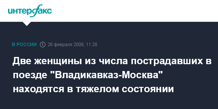Две женщины из числа пострадавших в поезде "Владикавказ-Москва" находятся в тяжелом состоянии