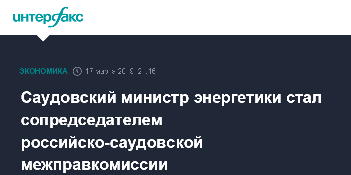 Москва. 17 марта. INTERFAX.RU - Министр энергетики Саудовской Аравии Халид аль-Фалих стал сопредседателем российско-саудовской межправительственной комиссии, сообщил в ходе брифинга министр энергетики России Александр Новак.