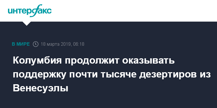 Москва. 18 марта. INTERFAX.RU - Колумбия продолжит оказывать поддержку почти 1 тыс. дезертиров из сил общественной безопасности Венесуэлы, следует из заявления министерства иностранных дел.