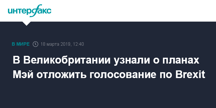 Москва. 18 марта. INTERFAX.RU - Премьер-министр Великобритании Тереза Мэй может отложить третье голосование по соглашению по Brexit в британском парламенте, сообщает The Daily Mail.