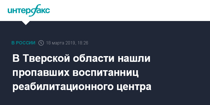 Москва. 18 марта. INTERFAX.RU - Следствие в Тверской области установило местонахождение трех воспитанниц реабилитационного центра, которые ранее пропали по дороге из школы, сообщила в понедельник пресс-служба СУ СКР по региону.