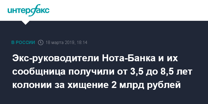 Экс-руководители Нота-Банка и их сообщница получили от 3,5 до 8,5 лет колонии за хищение 2 млрд рублей