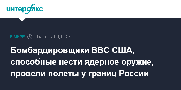 Бомбардировщики ВВС США, способные нести ядерное оружие, провели полеты у границ России