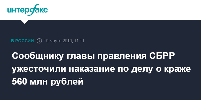 Сообщнику главы правления СБРР ужесточили наказание по делу о краже 560 млн рублей