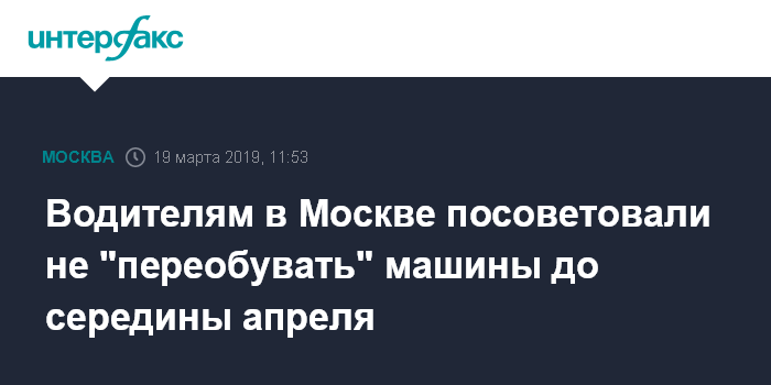 Москва. 19 марта. INTERFAX.RU - Центр организации дорожного движения (ЦОДД) Москвы просит автомобилистов не переходить на летнюю резину до середины апреля.