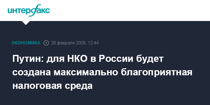 Путин: для НКО в России будет создана максимально благоприятная налоговая среда