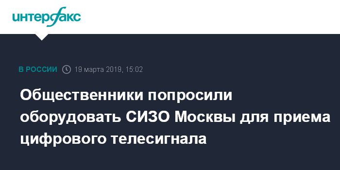 Москва. 19 марта. INTERFAX.RU - Общественная наблюдательная комиссия Москвы обратилась к руководству ФСИН с просьбой принять меры для оснащения камер следственных изоляторов необходимым оборудованием для приёма цифрового телесигнала.