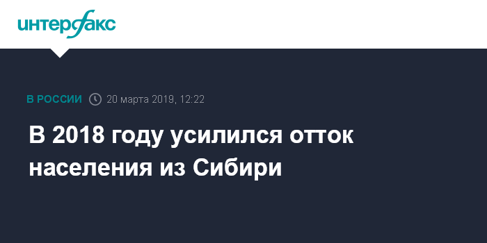 Москва. 20 марта. INTERFAX.RU - Росстат зарегистрировал усиление оттока населения из регионов Сибири, следует из материалов Новосибирскстата.