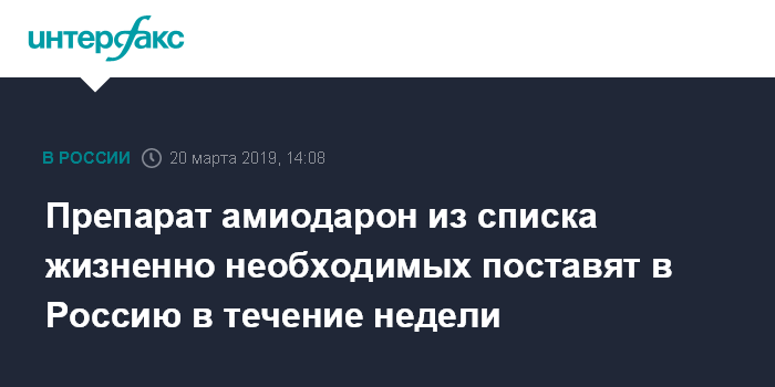 Препарат амиодарон из списка жизненно необходимых поставят в Россию в течение недели