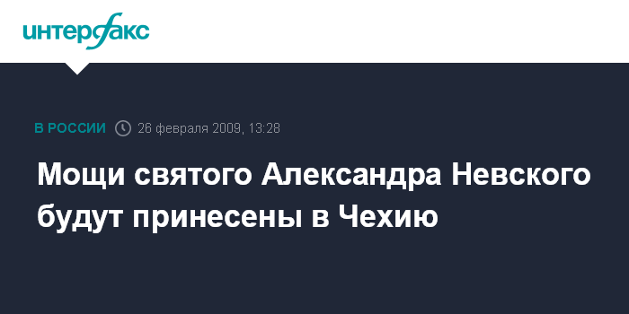 Москва. 26 февраля. INTERFAX.RU - Верующие Чехии смогут поклониться мощам святого князя Александра Невского.