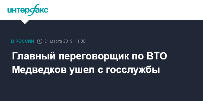 Главный переговорщик по ВТО Медведков ушел с госслужбы