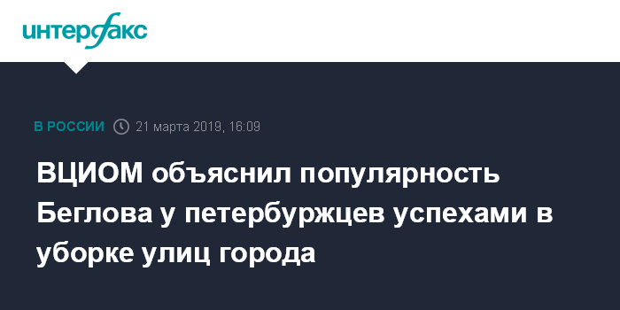 "Много факторов оказывает влияние, в том числе и погодная обстановка, снежная зима. Могу сказать, что "лопата Беглова" зашла хорошо. Активность Беглова в решении этой проблемы, в том числе и такими способами, нашла поддержку и признание", - сказал глава ВЦИОМ.