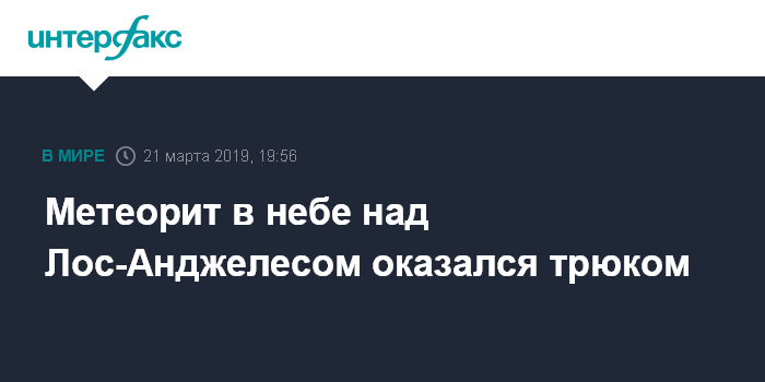Москва. 21 марта. INTERFAX.RU - Замеченный вечером 20 марта метеорит в небе над Лос-Анджелесом был частью каскадерского трюка, сообщили в четверг в местном полицейском управлении.
