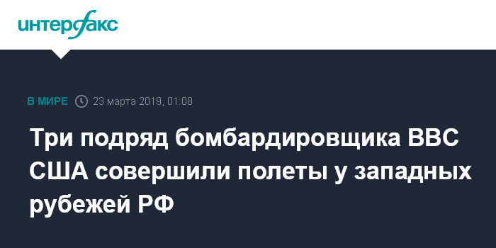 Три подряд бомбардировщика ВВС США совершили полеты у западных рубежей РФ
