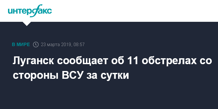 Москва. 23 марта. INTERFAX.RU - Вооруженные силы Украины за прошедшие сутки обстреляли территорию самопровозглашенной Луганской народной республики свыше десяти раз, сообщили "Интерфаксу" в народной милиции ЛНР.