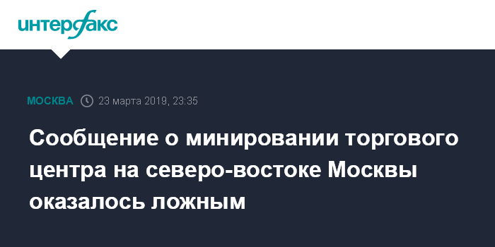 Сообщение о минировании торгового центра на северо-востоке Москвы оказалось ложным