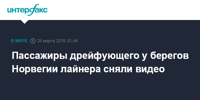 Москва. 24 марта. INTERFAX.RU - Пассажиры лайнера Viking Sky, терпящего бедствие у берегов Норвегии, сняли видео о ситуации на борту в ожидании эвакуации. Запись опубликовал телеканал РЕН ТВ.