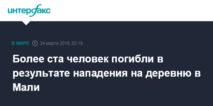 Москва. 24 марта. INTERFAX.RU - Как минимум 115 человек стали жертвами нападения на деревню Огосагу в центральной части Мали, сообщило агентство Associated Press.