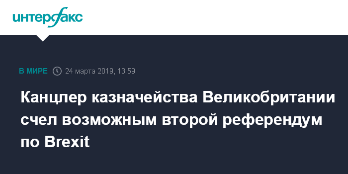 Канцлер казначейства Великобритании счел возможным второй референдум по Brexit