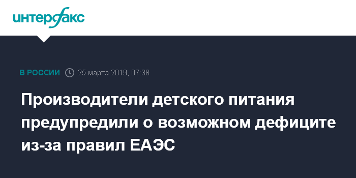 Производители детского питания предупредили о возможном дефиците из-за правил ЕАЭС