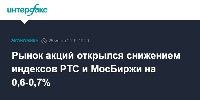 Рынок акций открылся снижением индексов РТС и МосБиржи на 0,6-0,7%