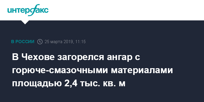 Москва. 25 марта. INTERFAX.RU - В подмосковном Чехове горит ангар с горюче-смазочными материалами, сообщили "Интерфаксу" в региональном главке МЧС РФ.
